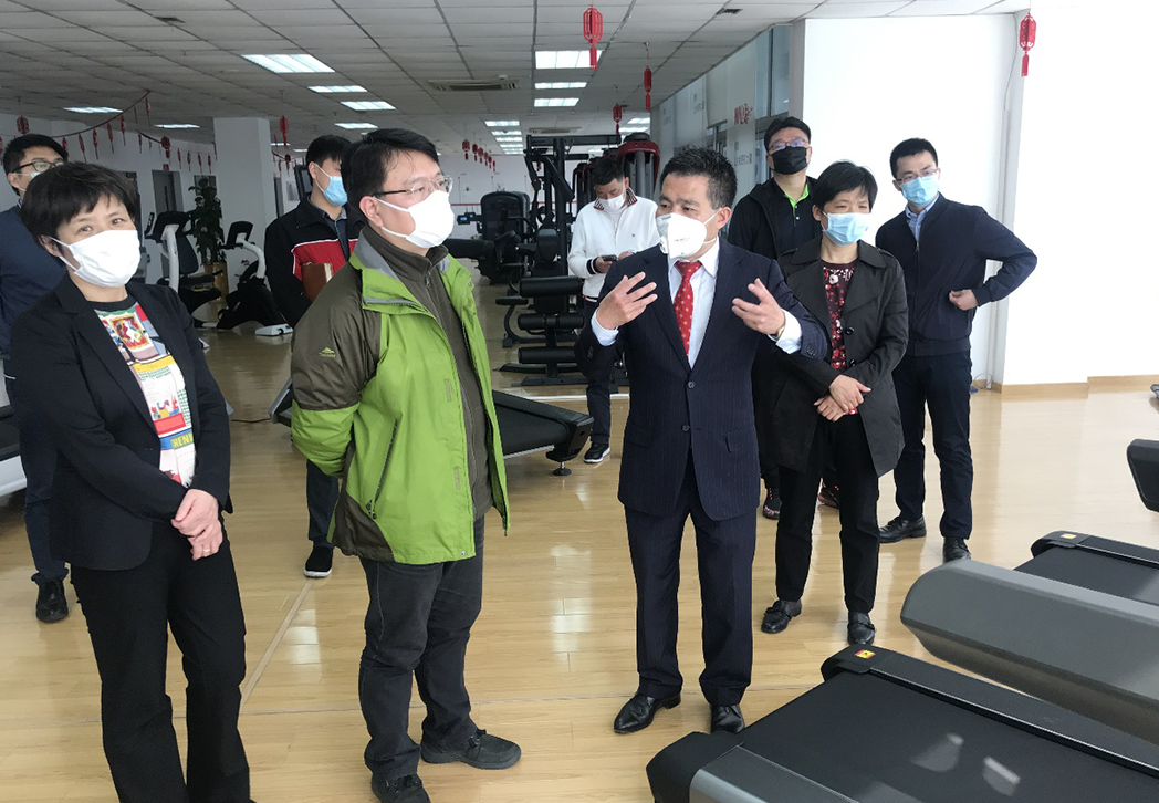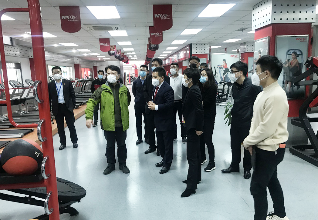 徐彬局长一行首先参观了公司,并了解公司发展历程、企业文化等情况。参观过程中,徐彬局长对我司丰富的产品种类以及新品维纳斯双屏跑步机等产品给予了肯定,对公司的研发、生产等提出了许多宝贵的意见!